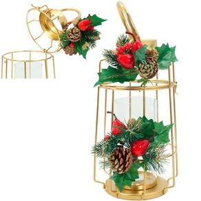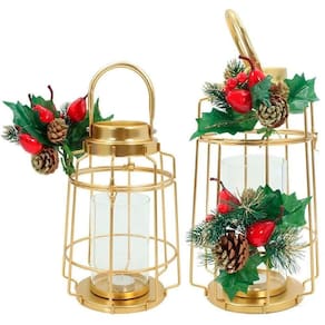 Kit 2 Lamparinas Natal Dourada Em Metal Decorativa 36cm 30cm -