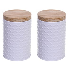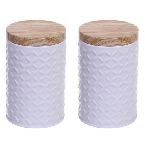 Kit 2 Latas Porta Mantimento Tampa Bambu Jogo de mantimentos Cor: Branco Este porta mantimento é ideal para guardar grãos como açúcar, arroz, feijão, milho entre outros. A CAPACIDADE é de 1KG destes grãos, e o melhor de tudo a VEDAÇÃO é ótima