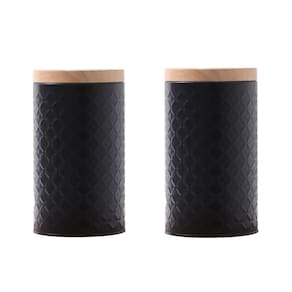 Características: Cor: Branco ou Preto Material: Metal Largura: 10cm Comprimento: 10cm Altura: 19,5cm Tampa: Material da tampa é metal que imita bambu, para que a vedação seja mais eficiente.