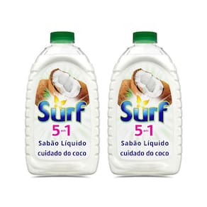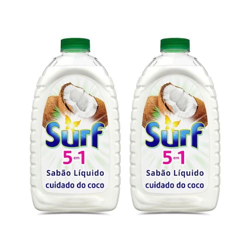 - Surf 5 em 1 líquido te dá muitos benefícios por menos. - Surf 5 em 1 cuidado do coco líquido tem limpeza multiuso* profunda. *MULTIUSO SE REFERE AO USO PARA LAVAGEM DE VARIADOS TIPOS DE ROUPAS E TECIDOS. - Surf 5 em 1 te dá fragrância de coco intensa e duradoura. - Surf 5 em 1 te dá bom custo-benefício. - Surf 5 em 1 cuidado do coco cuida da roupa. - Surf 5 em 1 cuidado do coco é dermatologicamente testado.