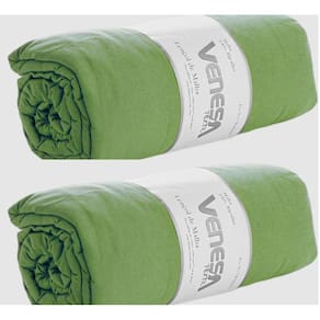 Kit 2 Lençóis de Malha Queen Venesa Cor: Verde Pistache Para Colchão de 1,58m x 1,98m, com até 30 cm de altura. Com elástico em toda volta.Contém: 2 Lençóis de malha Tamanho 2,30m x 2,70m