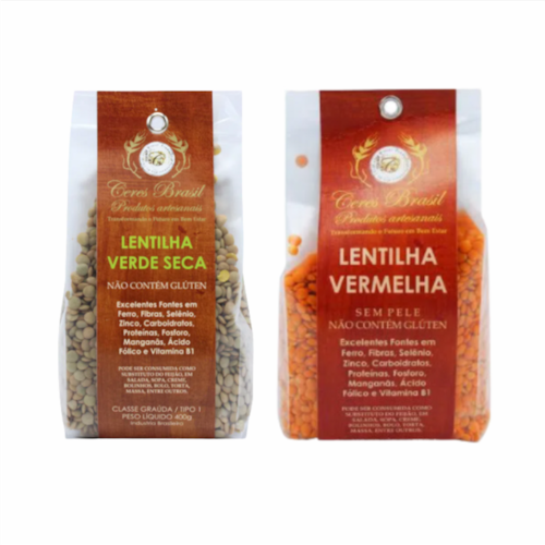 Kit com 2 Lentilhas Sem Glúten Ceres: Lentilha Vermelha e Lentilha Verde