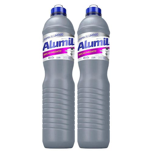 Kit 2 limpa aluminio alumil start 500ml cada perfume de uva Kit com: 2 alumil brilha aluminio 500ml perfume de lavanda A fórmula de alumil brilha aluminio é moderna e eficiente remove as manchas dos alumínios proporcionando um maior brilho. Age também como um desengordurante e desincrustante. Cuidados: nâo aplicar em metais ferrosos ou inox. Nâo aplicar diretamente sobre a superfície. Não deixar secar sem enxaguar. Não aplicar sobre superfícies com pintura. Modo de usar: remova o excesso de gordura, aplique o brilha alumínio alumil sobre uma esponja umedecida e espalhe por toda a superfície. Deixe agir por alguns instantes e esfregue um pouco. Remova os resíduos com sabão ou detergente neutro e em seguida, enxágue com água em abundância. Importante: use luvas ao manusear o produto. Detalhes do produto- produto biodegradável. Envio: - 2 frascos de 500ml Finalidade de uso- elaborado especialmente para limpeza de alumínios. Marca: Alumil Start Química
