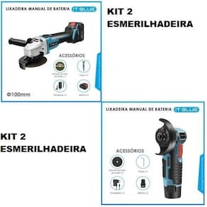 Kit 2 lixadeira esmerilhadeira a bateria 21v it-blue Kit 2 lixadeira esmerilhadeira angular A lixadeira esmerilhadeira angular pode ser utilizada não apenas para trabalhar com metais, mas também para cortes em alvenaria e concreto. Essa versatilidade amplia o leque de aplicações possíveis, tornando-a uma ferramenta indispensável em projetos de construção e reforma. Essas características foram projetadas com o conforto do usuário em mente, proporcionando maior praticidade e reduzindo a fadiga durante o uso prolongado. Você poderá manusear a lixadeira com facilidade, mesmo em tarefas mais exigentes, garantindo um trabalho mais eficiente e menos cansativo. Além de ser recarregável e acompanhar 2 baterias, o que a torna portátil e versátil.