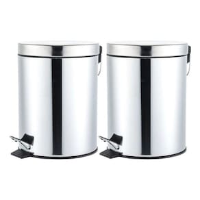 Kit 2 Lixeiras Cromadas Redondas Com Pedal 5 Litros