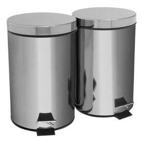 Kit 2 Lixeiras Cromadas Redondas Com Pedal 7 Litros