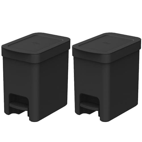 Kit 2 Lixeiras de Pedal com Aro Interno 6 Litros para Banheiro Polipropileno Trium Preto.