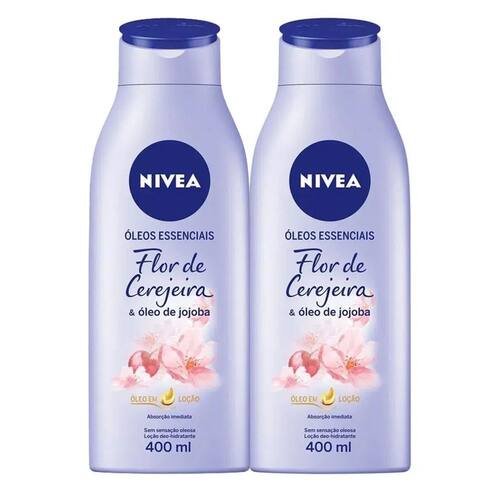 Loção Nivea Óleos Essenciais Flor de Cerejeira O que é? Loção Hidratante NIVEA Óleos Essenciais Flor de Cerejeira nutre a pele com cuidado, deixando-a macia e sequinha. Hidrata por 24h e ainda perfuma. Garanta o seu! Para que serve a Loção Hidratante NIVEA Flor de Cerejeira? O hidratante para pele seca tem uma fórmula que combina o poder nutritivo do Óleo de Jojoba com a deliciosa fragrância da Flor de Cerejeira. Benefícios e diferenciais - Não deixa a pele oleosa - Pele macia, perfumada e com brilho - Textura leve de rápida absorção Como usar a Loção Hidratante NIVEA Óleos Essenciais? Aplique na pele e massageie até que seja absorvido. Indicamos usar logo após o banho para apreciar a sensação de maciez prolongada. Uma unidade de embalagem contém 400ml Ean: 4005900669261 Ean: 4005900669261