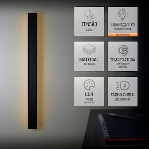 transforme seu ambiente com kit/2 arandela profile, um modelo sofisticado que combina design moderno e iluminação eficiente. Seu acabamento em alumínio preto proporciona um toque elegante e contemporâneo para qualquer espaço. Destaques do produto -com um design moderno e sofisticado - combinando com qualquer decoração e ambiente. -modelo : ar 6137 -cor es : preto pintura pó . -material de alta qualidade : feita com um alumínio resistente para maior durabilidade. -acompanha fita de led embutida. -ideal para diferentes ambientes - perfeita para quartos, salas, escritórios e áreas gourmet. -peça com acionamento em instalado na residência. -modelo não recarregável. - de 3 meses. Especificações técnicas Kit/2 ar 6137 profile 65x40x725mm 3000k 15w 220v pt Material : alumínio Cor : preto Iluminação : fita de led Led incluso 3000k branco quente Potência: 15w Voltagem : 220v Medida : 650mm x 40mm x 725mm Peso : 500gr Quantidade : 2 produtos. Observação : o produto necessita de instalação elétrica para o funcionamento adequado. Conteúdo da embalagem : 2 luminárias led. Marca: Não Informado Ean: 7893313958471
