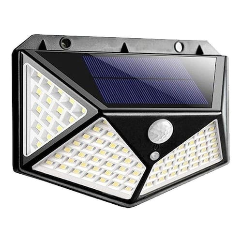 Luminária solar led alta intensidade 4 placas totalizando 100 leds smd de alta intensidade com sensor de presença e 3 modos de operação de parede.