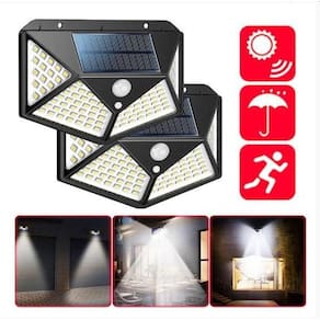 Kit 2 Luminária Solar 100 Leds Sensor Presença Sem Fio