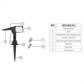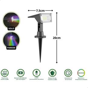 Características do produto: - tecnologia solar eficiente: equipado com um painel solar cristalino de 0,6w, que converte a luz do sol em energia elétrica, recarregando a bateria interna durante o dia. - instalação simples e rápida: posicione o spot em um local que receba bastante luz solar. Um sensor fotossensível acende automaticamente a luminária ao anoitecer. - resistente e durável: fabricado em plástico de alta resistência abs , é ideal para áreas externas, sendo resistente à água. - painel solar articulado: permite melhor direcionamento para o sol, otimizando o carregamento da bateria. - foco de luz direcionável: ideal para destacar elementos específicos no jardim, com duas opções de aplicação: no piso/solo ou na parede. - escolha a cor da luz: personalize a iluminação do seu jardim com leds que oferecem opções de luz vermelha, verde, azul ou ciclo rgb.