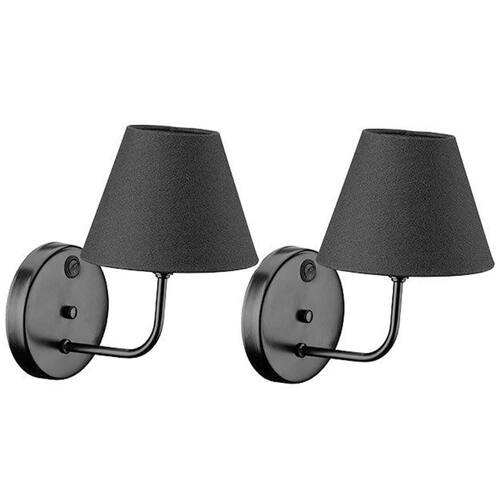Kit 2 Luminárias Arandelas de Parede Preto Bivolt com Interruptor Cúpulas Tecido.