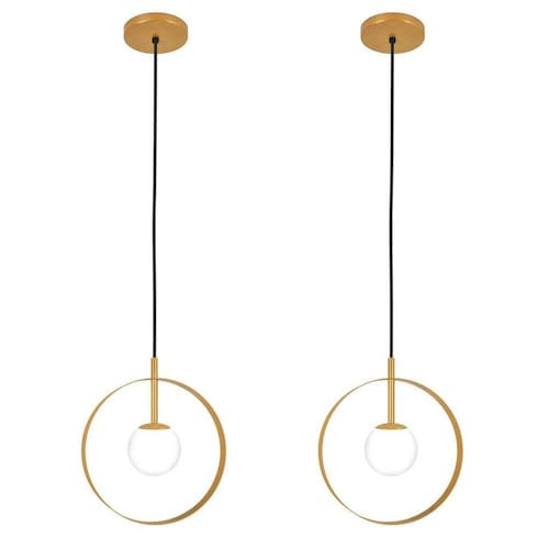 Tudo para iluminar seu ambiente com muito charme Perfeito para todos os ambientes Modelo: pendente Cor es : dourado Material: alumínio Canopla de teto: alumínio 12cm Globo de vidro opalino: 10cm Cabo de alimentação regulável: 1,5m Luminária: 1 soquete g9 Número de lâmpadas: 1 lâmpadas não inclusas Voltagem: 127v/220v Medida: 18cm Peso líquido: 0,3 kg Conteúdo da embalagem: 2 luminárias de teto