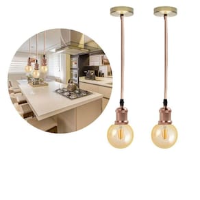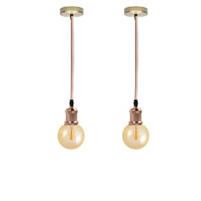 Kit 2 luminárias pendente retro vintage de metal com lâmpada formato globo com filamento led g95 cor 2300k âmbar Cor: rose gold Luminária pendente retro vintage com lâmpada formato globo âmbar, traz estilo para sua casa, beleza e aconchego.