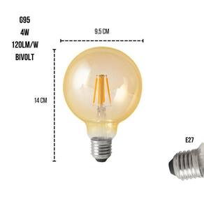 Especificação da lâmpada: - modelo da lâmpada: lâmpada de filamento led g95/e27 - potência: 4w - lúmens: 120lm/w - voltagem: bivolt - temperatura da lâmpada: 2300k âmbar - peso da lâmpada: o cada lâmpada pesa aproximadamente 57 gramas - medidas do pendente: diâmetro:9,5cm x altura:14cm