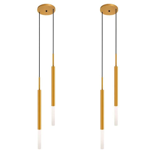 Tudo para iluminar seu ambiente com muito charme Perfeito para todos os ambientes Modelo: pendente Cor es : dourado Material: alumínio com policarbonato Canopla de teto: alumínio 15cm Cabo de alimentação regulável: 1,5m Luminária: 2 soquete g9 Número de lâmpadas: 2 lâmpadas não inclusas Voltagem: 127v/220v Medida: 53 x 2,5 cm Peso líquido: 0,6 kg Conteúdo da embalagem: 2 luminárias de teto