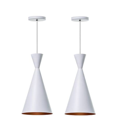 Kit 2 Lustre Pendente Canadá Branco Com Cobre Mesa Jantar