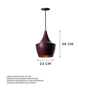 Especificações Técnicas: Marca: Ideallume Modelo: Balão Fixação: Teto Tipo de uso: Interno Pintura: Eletrostática - Tinta: microtextura poliéster Cor: Marrom Com Cobre Material : Alumínio Voltagem Do Pendente: Bivolt 110/220v Soquete: E27 Medidas L x A x D : 23 x 30 x 23 cm Lâmpada: Utiliza 1 lâmpada Não inclusa