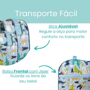 Com o Kit Bolsa Maternidade Dinossauro, você terá: Organização e praticidade: Tudo em seu devido lugar para facilitar o seu dia a dia com o bebê. Estilo e personalidade: Uma estampa divertida e vibrante que reflete a energia contagiante do seu pequeno explorador. Conforto e praticidade: Alças ajustáveis e design leve para carregar tudo com você sem esforço.