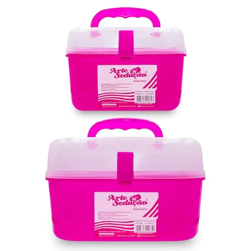 As Maletas Multiúso Arte Sedução, são indicadas para manicures, pedicures, maquiadoras e demais profissionais de estética que buscam organizar e transportar seus materiais com charme, de forma prática, leve e segura. Contém compartimento organizador removível, ideal para manter a organização. Possui alça dobrável para o transporte de forma prática e segura. Permite a organização e transporte de diversos itens como: esmaltes, maquiagens, materiais escolares, jóias, pequenos brinquedos, entre outros.