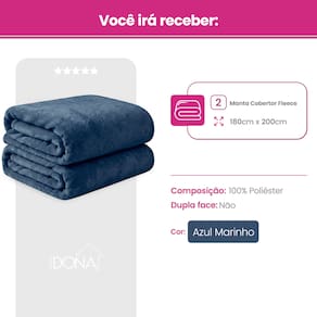 Kit 2 Mantas Cobertor Casal Microfibra Super Macio Com Conforto Térmico Premium Casa Dona - Azul Marinho