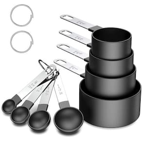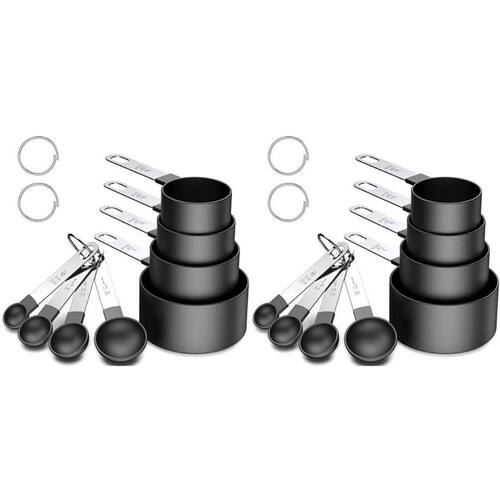 - kit com 2 conjuntos de medidores culinário em inox preto 8 peças