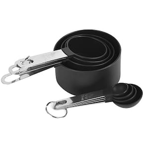 2 medidor culinário inox colher xícara cozinha preto 8pçs