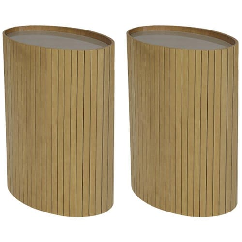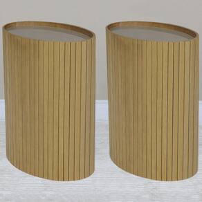 Kit 2 Mesa Apoio Lateral Oval Tampo Vidro Glow Madeira Amêndoa, é um uma peça versátil e moderna, ideal para deixar sua casa com uma estética incrível. Estrutura em madeira de tauari em forma de esteirinha e tampo em vidro de 6 mm. Compostas por tampo de vidro na cor glow, e madeira tauari em forma de esteirinha com acabamento em amêndoa. Suporta até 15 Kg distribuídos. Possui design sofisticado, que oferece versatilidade e charme a sua decoração. Este móvel chegará em sua casa separado em 02 volumes.