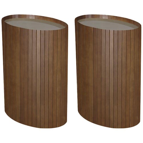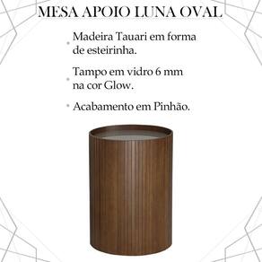 Kit 2 Mesa Apoio Lateral Oval Tampo Vidro Glow Madeira Pinhão, é um uma peça versátil e moderna, ideal para deixar sua casa com uma estética incrível. Estrutura em madeira de tauari em forma de esteirinha e tampo em vidro de 6 mm. Compostas por tampo de vidro na cor glow, e madeira tauari em forma de esteirinha com acabamento em pinhão. Suporta até 15 Kg distribuídos. Possui design sofisticado, que oferece versatilidade e charme a sua decoração. Este móvel chegará em sua casa separado em 02 volumes.