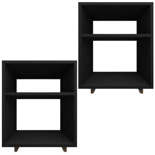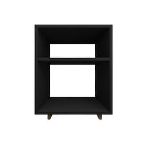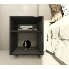 Mesa cabeceira nicho quarto Cor: Preto com pés madeirado