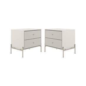 Amplo Espaço de Armazenamento:Cada mesa possui 2 gavetas espaçosas com puxadores em Zamac, ideais para organizar objetos de uso diário com praticidade. O tampo livre é perfeito para apoiar luminárias, celulares, livros e itens decorativos.