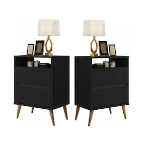 kit 2 mesa de cabeceira 45cm 2 gavetas com 1 nicho - Preto