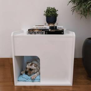 Mesa de Cabeceira com Cama para Pets (Cães) Cor: Branco Dimensões do Produto: Altura: 45 cm