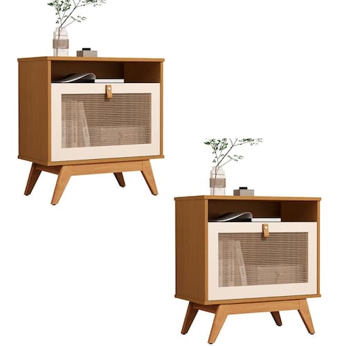 MDFA Mesa de Cabeceira Camu-Camu New une charme e funcionalidade em um design retrô moderno.