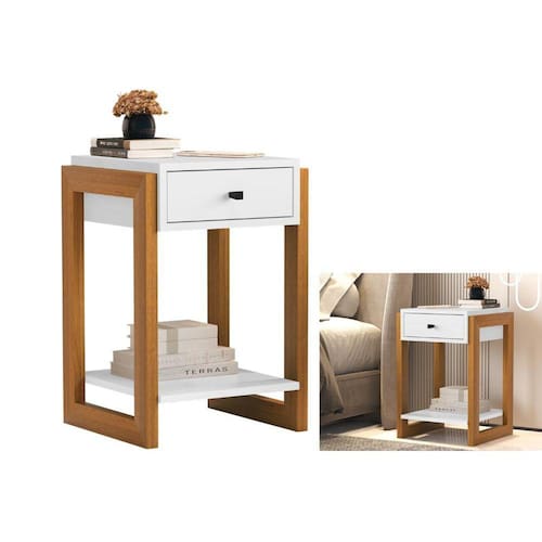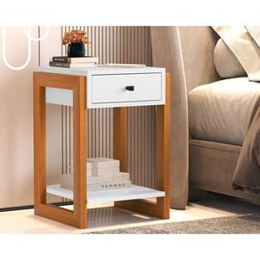 A mesa de cabeceira 1661 é mais um lindo lançamento da marca Ofertamo,com um design moderno, ela vem unindo sofisticação, charme e beleza em um só produto.Ela conta com 1 gaveta com corrediças telescopicas, sapatas plasticas anti-umidade e puxadores em PVC.Sua estrutura interna é em MDP de 15mm e sua base de sustenção lateral é em madeira Pinus de 22mm, propocionando maior durabilidade e qualidade do produto.