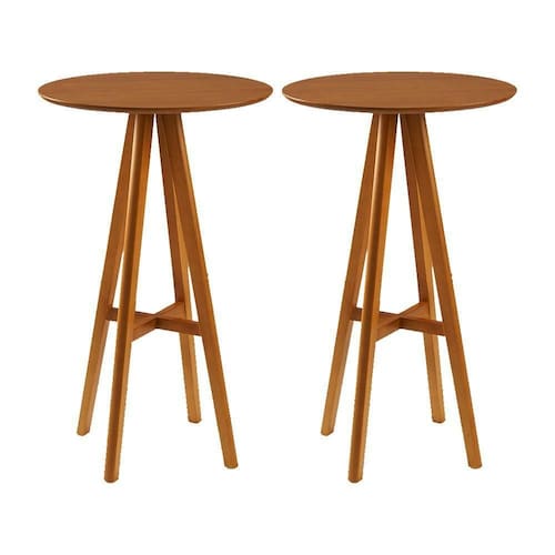 AS IMAGENS SÃO MERAMENTE ILUSTRATIVAS E PODEM SOFRER VARIAÇÕES DE COR E PEQUENOS DETALHES DE ACORDO COM O SEU MONITOR, ILUMINAÇÃO DO AMBIENTE E ATÉ MESMO A SUA PERCEPÇÃO VISUAL.Kit 2 Mesas Bistrà Alta Redonda Sila Base Madeira MaciÃa Mel