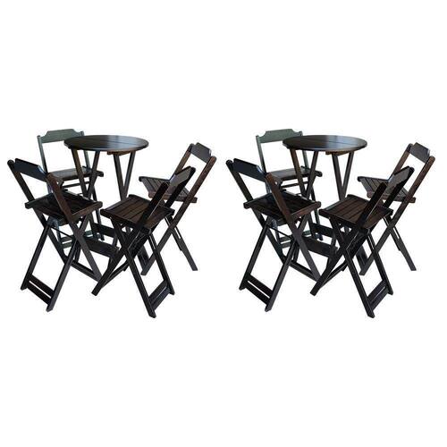 Kit 2 Mesas Bistrô Dobraveis Em Madeira Padrão Com 4 Banquetas Altas - Tabaco - Marrom