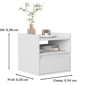 Kit 2 Mesas de Cabeceira suspensa com porta basculante Melina Cores - Comprar Moveis em Casa Cor: Branco Mesa de cabeceira Suspensa Minerva estilo retrô, embalado com caixa reforçada nas laterais para não ocorrer no transporte. Vendido pela Comprar Móveis em casa para deixar seu ambiente mais bonito e sofisticado Procure nossas redes sociais e confira todos nossos produtos e qualidade de atendimento : Produto com video de montagem no nosso canal, acesse nossas redes sociais: Comprar Móveis em Casa DIMENSÕES DO PRODUTO MONTADO Altura: 0,39 cm Largura: 0,34 cm Profundidade: 0,33 cm Caractersticas: 1 Porta basculante Cabeceira suspensa, acompanha grapa para instalação Material: MDP / MDF pode haver variações da matéria em lotes diferentes Pintura UV MONTAGEM: Este produto acompanha kit de montagem + manual de instrução detalhando passo a passo de como montar. A montagem do produto deverá ser feita por um profissional, para que não ocorram danos no produto. não nos responsabilizamos por erro de montagem Atenção: A montagem não é oferecida pela Comprar Móveis em Casa, a montagem do produto é por conta do comprador. OBSERVAÇÕES IMPORTANTES: A é de 90 dias por defeitos de fabricação. Em caso de erro de montagem, uso inadequado do produto, ou outros acidentes do gênero esta não será acionada. Se no ato de recebimento do produto o cliente verificar que o produto não está em prefeito estado, principalmente por ocasião de transporte irregular, o cliente deverá recusar o recebimento do produto e entrar em contato para resolver o problema. Podem haver variações referentes à tonalidade das cores expressas nas fotos, por conta de fatores como iluminação e brilho de cada monitor/celular. Fotos meramente ilustrativas, não acompanham os produtos de decoração. Se atente com a politica de troca/devolução da empresa, pois não é possivel realizar devolução do item montado. Marca: Não Informado