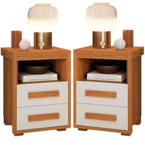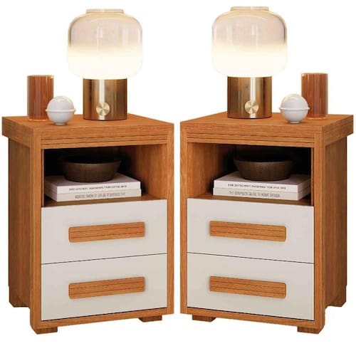 Kit 2 Mesas de Cabeceira 2 Gavetas Lóquio 100% MDF - Casa Chick Nature/Off White -
