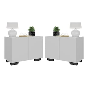 O Kit 2 Mesas de Cabeceira 2 Portas e Pés Quadrados Multimóveis MP4139 é a escolha perfeita para complementar seu quarto com estilo e funcionalidade. Fabricado em MDP com acabamento acetinado (cerca de 20% de brilho), garante durabilidade e resistência. Cada mesa possui 2 portas com amplo espaço interno para guardar seus objetos pessoais, mantendo tudo organizado e à mão. Seu design clean proporciona um visual moderno e sofisticado ao ambiente. Os pés quadrados em polipropileno oferecem estabilidade e dão um toque charmoso ao móvel. Cada mesa suporta até 6kg no tampo e 6kg em seu interior. Conteúdo da Embalagem: 2 (duas) Mesas de Cabeceira Manual de Montagem Kit Ferragem