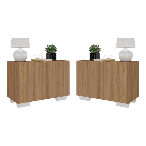 Kit 2 Mesas De Cabeceira 2 Portas E Pés Mp4139 Rustic branco