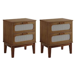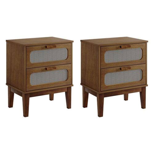 Kit 2 Mesas De Cabeceira 2gavetas Santorini Amêndoa 45 Cm Palhinha Indiana - Bege