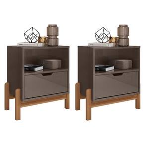 Kit 2 Mesas de Cabeceira Antares 1 Gaveta - Casa D Descubra a Mesa de Cabeceira Antares que combina elegância e funcionalidade. Com estrutura em MDP e pintura UV, oferece durabilidade e um acabamento impecável. A gaveta com corrediças telescópicas proporciona deslizamento suave e a frente usinada adiciona sofisticação. O nicho é ideal para livros ou objetos decorativos, enquanto os pés de madeira maciça garantem robustez e charme. Perfeita para qualquer decoração, essa mesa é a escolha ideal para aliar modernidade e praticidade.