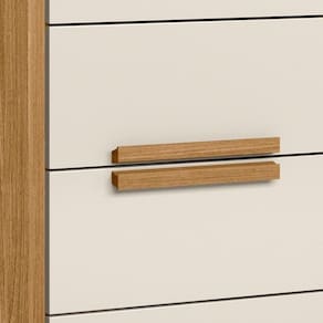 - Puxadores em MDF na cor do produto