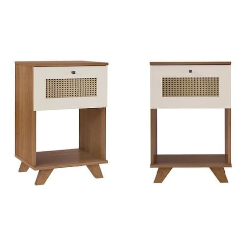 Potencialize sua sala de estar com a mesa de apoio TRAMA: o complemento perfeito para um espaço cheio de personalidade! Detalhes em impressão palha: Acabamento refinado que adiciona sofisticação e destaque à mesa no estilo boho chic, elevando o charme do ambiente. Organização inteligente: Uma gaveta para guardar o essencial, aliando praticidade ao seu dia a dia, mantendo tudo à mão. Nicho prático: Espaço extra para decorações ou itens de uso frequente, agregando mais funcionalidade. Versatilidade: O móvel oferece diferentes funcionalidades: mesa lateral, mesa de cabeceira ou apoio ao lado do sofá. Pés em MDF Estáveis: Pés sólidos em MDF garantem estabilidade e um visual moderno, harmonizando com diferentes decorações. A praticidade aliada ao estilo que seu espaço merece! Altura do Conjunto: 64.5 cm Ambiente: null Ambiente Principal: Quarto Cor: Cinamomo/Off White Informação Complementar: 2x Mesa Lateral de Apoio 1 Gaveta em Palha Trama Cinamomo/Off White Largura: 43 cm Altura: 64,5 cm Peso: 11 kg Profundidade: 35,5 cm Necessita Montagem: Sim