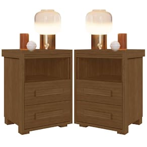 • 2 x Mesas de Cabeceira Pés Madeira 2 Gavetas Tóquio 100% MDF Manual de Montagem Acessórios para Montagem