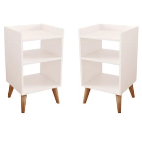 * Embora o produto acompanhe o manual de montagem e seja bem simples, verifique a complexidade antes de decidir montá-lo s Acabamento dos Pés: Verniz Altura dos Pés: 17 Ambiente Principal: Quarto Complexidade da Montagem: Baixa: pode ser montado por uma pessoa sozinha Cor: Branco Cor do Produto: Branco Cor Interna: Branco Escala de Brilho: Fosco Informações Complementares: 10kg por prateleira Itens Inclusos: 2 Mesas de Cabeceira, Kit Ferragens e Manual de Montagem Manual de Montagem e Instalação: https://product-hub-prd.madeiramadeira.com.br/848229/documents/6c5f7039-d074-40bb-ba7e-7a94cee4abaa1313086mvdmm001001.pdf Material dos Pés: Madeira Maciça Material Principal: MDF/MDP Necessita Montagem: Sim Origem do Produto: Nacional Pés Reguláveis: Não Peso: 8 Peso Máximo por Prateleira: kg Pet Friendly: Não Possui Espelho: Não Possui Possui Nichos: 02 Possui Pés: 04 Possui Portas: Não Possui Prateleiras: Não Possui Vidro: Não Quantidade de Nichos: 02 Recomendações de Uso, Manutenção e Limpeza: Limpar com pano umedecido Sapatas Niveladoras: Não Sistema de Montagem: Cavilhas e parafusos Suporta Até (kg): 30 Tipo de Madeira Maciça dos Pés: Pinus Marca: MVD