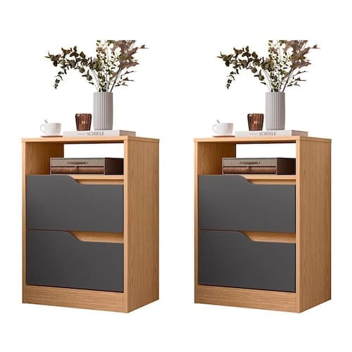 Kit 2 Mesas De Cabeceira Sole 2 Gavetas Freijó-titanium - Móveis Albatroz Freijó-titanium - Blush