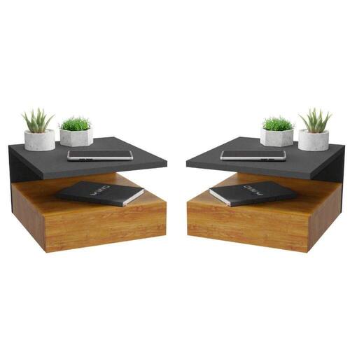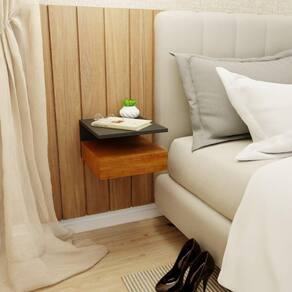 Kit 2 Mesas de Cabeceira Suspensa 1 Gaveta Inferior Preto/Freijó